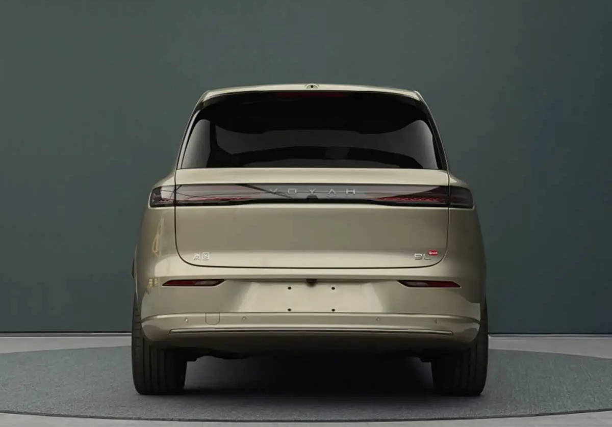 新车侧面是典型的大型SUV车身结构,预计采用三排六座座椅布局,车内二排将配备零重力座椅,尺寸上,其长宽高分别为5230/2025/1817mm、轴距为3120mm。车尾则采用贯穿式尾灯设计,同时后窗顶部配备有扰流板,整体造型非常饱满。