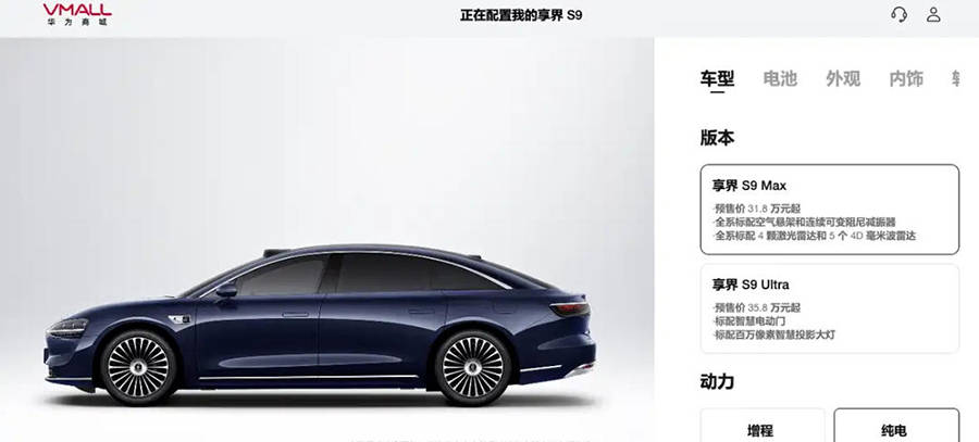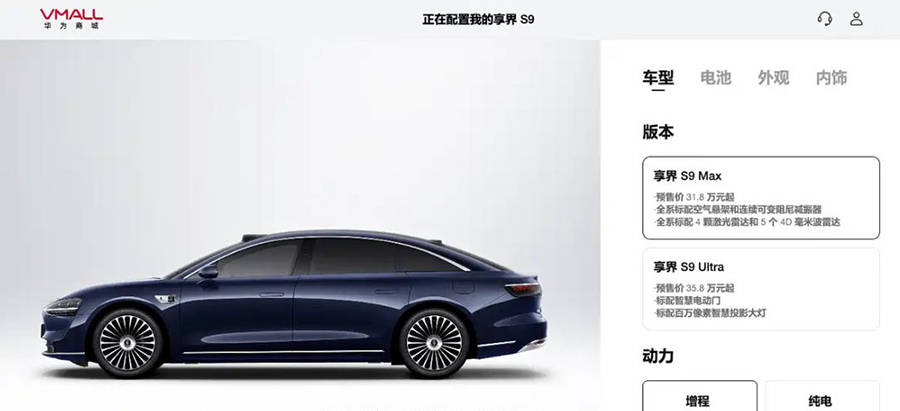动力方面,享界S9提供纯电、增程两种能源形式,纯电版已于此前完成工信部申报,基于800V高压平台打造,搭载由华为数字能源技术有限公司所生产型号为TZ210XYA03的驱动电机,其最大功率为227千瓦。续航将超800公里;增程版车型将搭载华为雪鸮智能增程系统,CLTC综合续航里程超过1300公里。