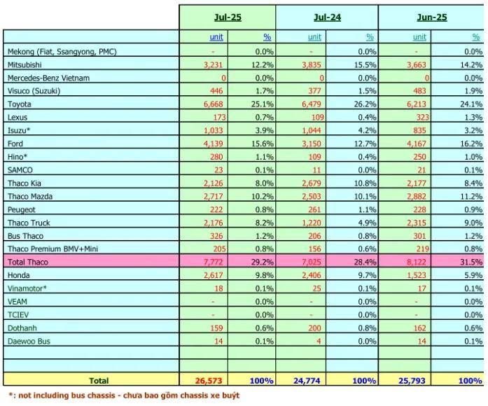记者分析了2025年7月份 VAMA的产销数据,发现所有被统计的品牌销量环比都增长,这从一个侧面说明,越南汽车消费需求较旺盛。