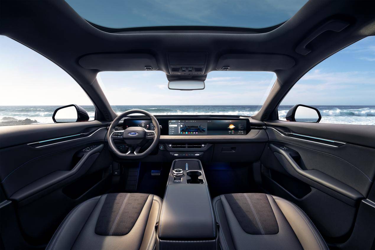 智能方面,新蒙迪欧全球首发新一代SYNC®+智行互联系统,全系标配8155芯片并引入STR快速启动技术,语音助手升级至VA 4.0并接入大模型。它不仅支持Apple CarPlay与车载高德地图,还升级了540°全景影像透明底盘,更具备OTA可持续进化能力,为未来打开第三方应用生态预留空间,是一款能“持续成长”的智能座舱。