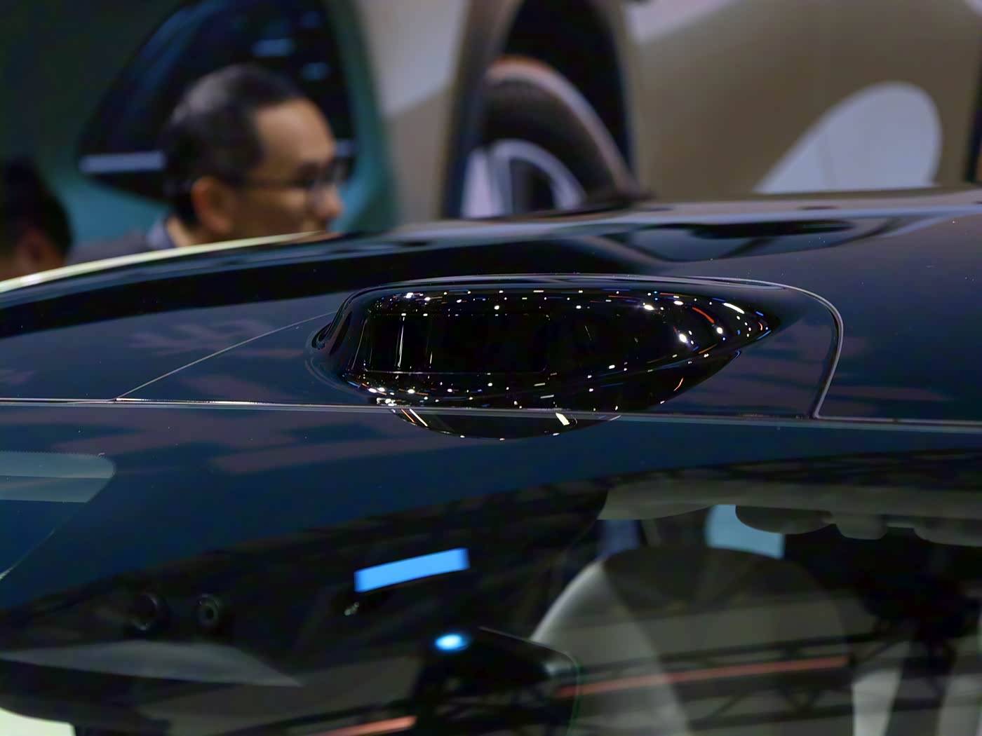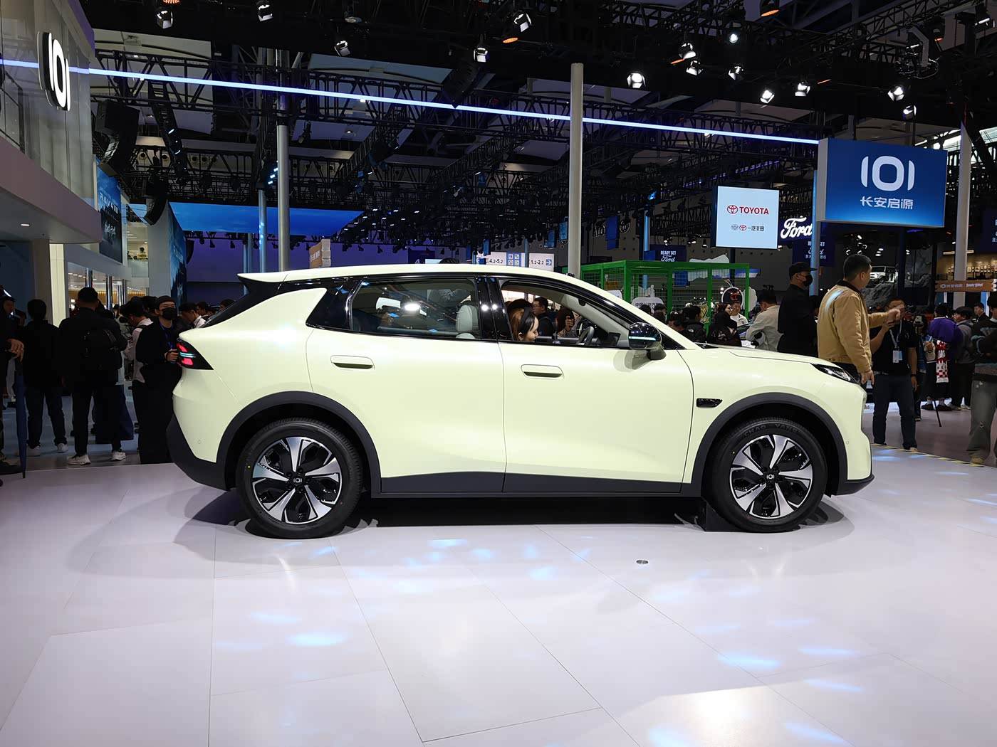 车身侧面,线条饱满流畅,悬浮式车顶和大尺寸轮毂增添了运动时尚气息,而半隐藏式门把手则兼顾了风阻和实用性。