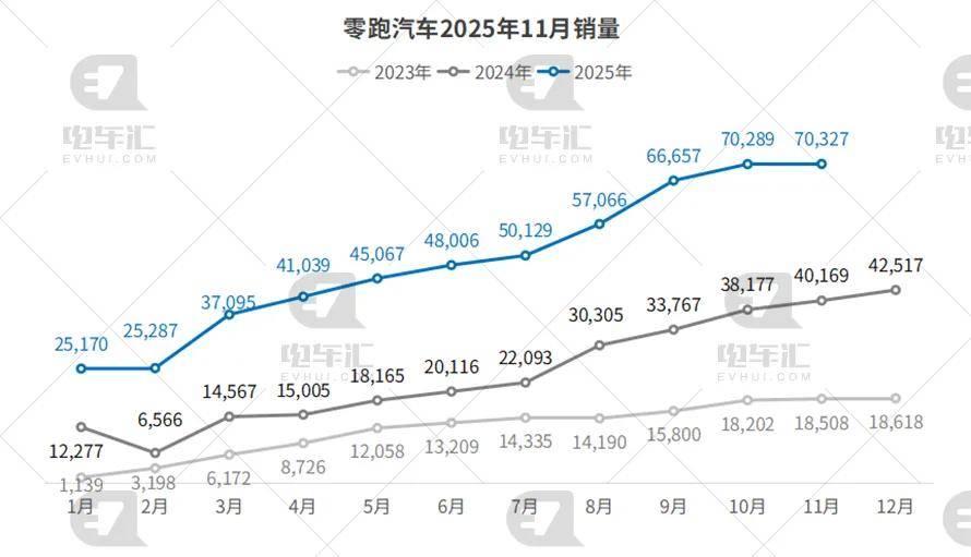 零跑11月交付70,327辆,环比微增0.1%,同比增长75.1%;1–11月累计536,132辆,同比大增113.4%。LEAP3.5架构下B10、C16订单占比超六成,D19全尺寸SUV开启交付,品牌均价站稳20万元,盈利拐点临近。