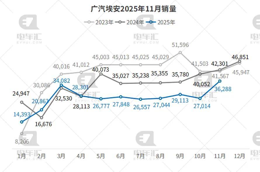 广汽埃安11月交付36,288辆,环比大幅增长34.3%,但受产品周期影响,同比仍下降14.2%;1–11月累计销量298,280辆,同比下降18.5%。AIONYPlus与第二代AIONV终端优惠加码,B端运营市场逐步回暖,年末冲量初显成效,但全年复苏仍面临挑战。