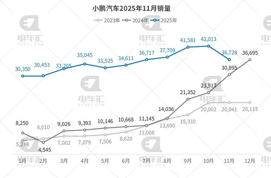 小鹏11月交付36,728辆,环比下降12.6%,但同比增长18.9%;1–11月累计391,937辆,同比暴增155.5%。MONA M03持续放量,G6/G9欧洲本地化生产稳步推进,出口占比稳步提升,海外毛利优势助力整体盈利改善。