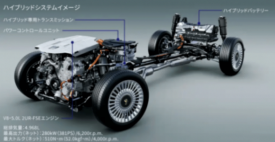 动力上,新车配备了5.0升V8自然吸气发动机+电动机组合而成的混动系统,发动机最大功率280千瓦,最大扭矩510牛·米,整套混动系统综合功率317千瓦(431马力),传动系统匹配eCVT变速箱以及后轮驱动。