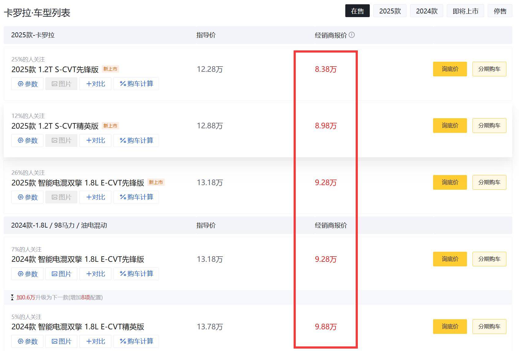 日前,鬼哥了解到,现款一汽丰田卡罗拉的价格很给力,在汽车之家市场行情中看到,该车型优惠幅度3-4万之间,对于一款紧凑型轿车来说,这一力度相当可观,值得一提的是,很多商家推出的是“综合优惠”,消费者需要搭配很多消费项目,还有提车条件,比如,有的商家标注“本月内订车、本业内提车、持本地牌照”等等。