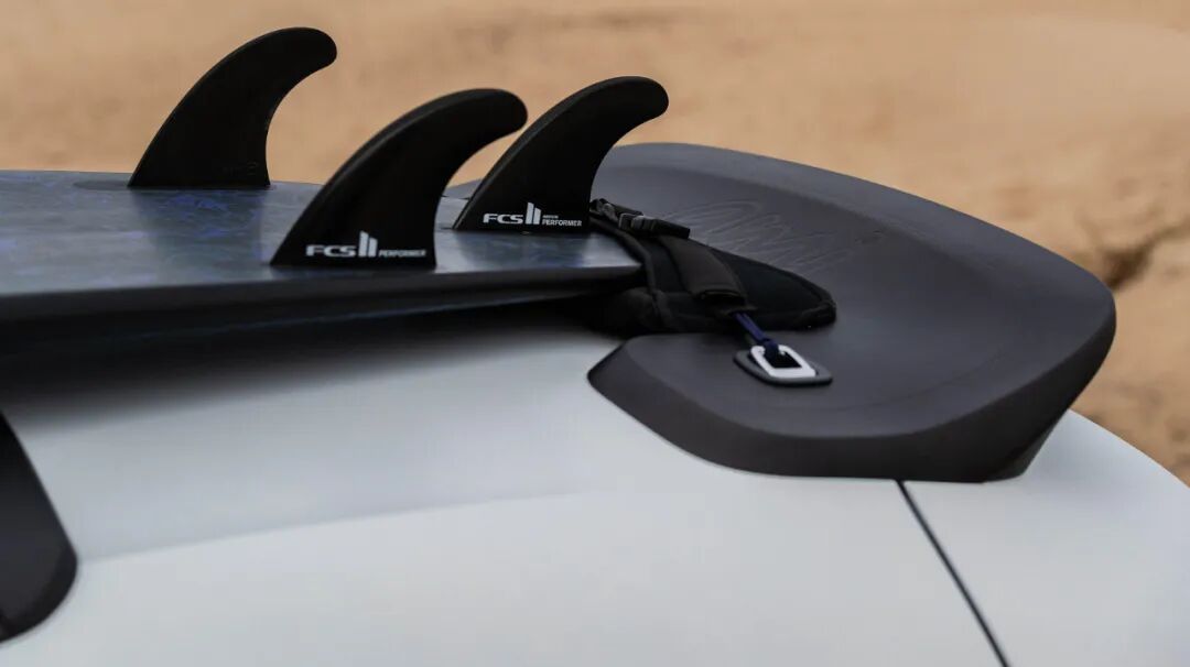 为了让冲浪板有地方固定,车顶和侧面加了结构支架,不占车内空间,不影响乘坐,就是一个极其纯粹的功能件。