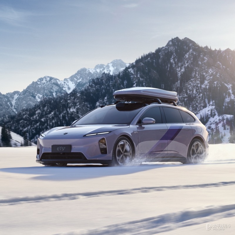 其次新ET5T车型额外配备车顶行李架导轨、车顶箱横杆及远空紫车顶箱,以提升装载能力。