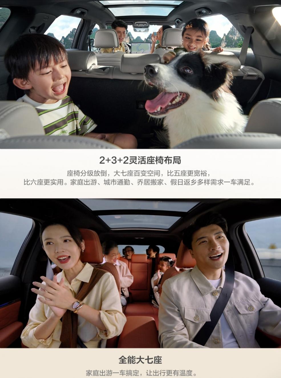 空间与舒适:核心卖点是大7座!2+3+2布局,能满足多孩家庭或三代同堂的出行刚需。标配云辇-C(部分车型)、TBC爆胎稳行系统,舒适安全。