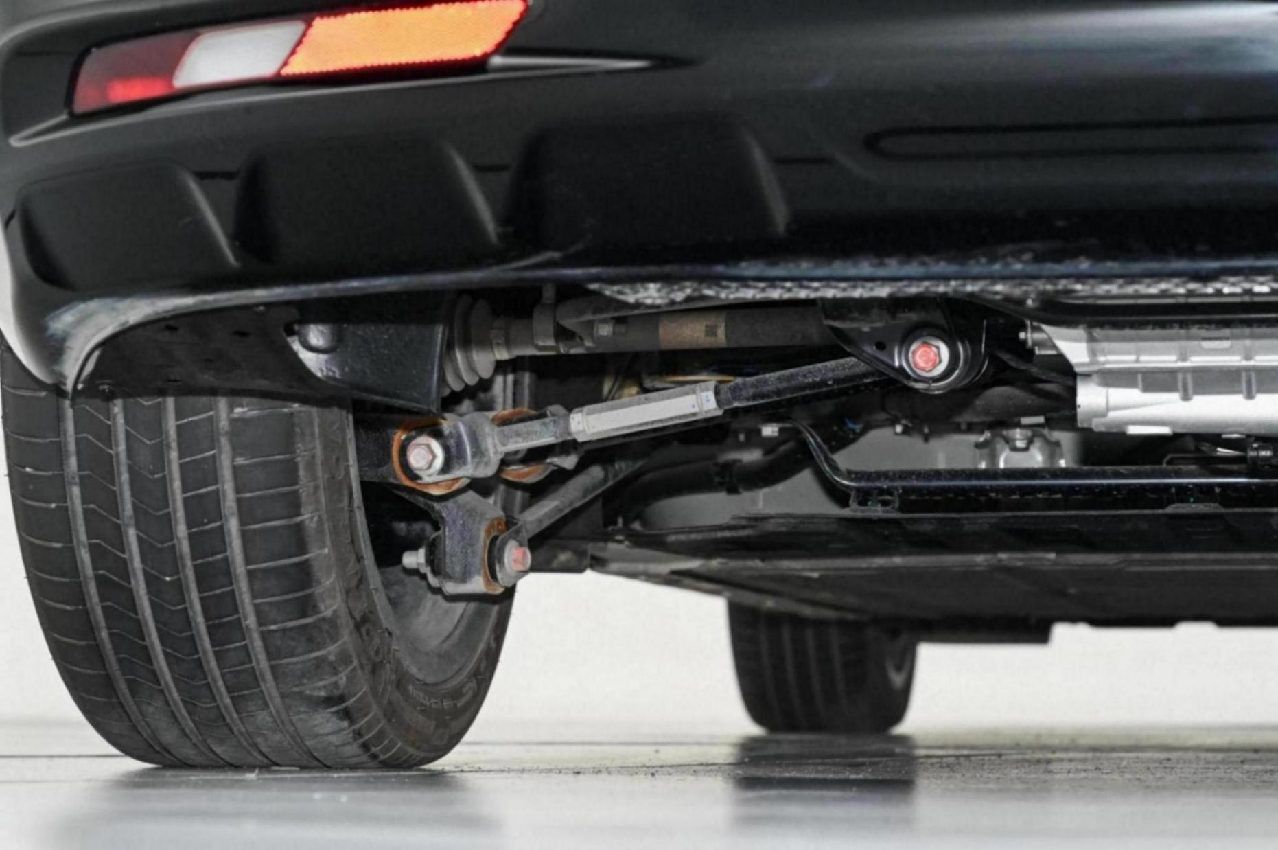 驾驶体验感受上,首先是坐在车内后座椅的坐姿更趋于像是一台SUV的坐姿感受,而该车的底盘采用的前麦弗逊式独立悬挂以及后多连杆式独立悬挂,整体调教更趋于操控表现,由于我是在城区道路试驾,并没有过于激烈测试这款车。而在过弯时,该车还是有着不错的后驱车该有的感受,稍微加速过弯的情况下,该车的底盘横向支撑表现还不错,但坐在车内的还是能够感受到一定的侧倾,而在经过城区道路的减速带时,该车的底盘的零碎颠簸感还是能够感受到,底盘的整体感上还是有一定的提升,但是话又说回来,10万级的车型能够给到这样的表现,还“要啥自行车”啊。还有一点就是我在车后底部拍到的,整体的线路设计还是稍显凌乱,真要买这台车还得考虑在底部装上一个护甲。