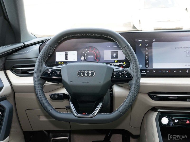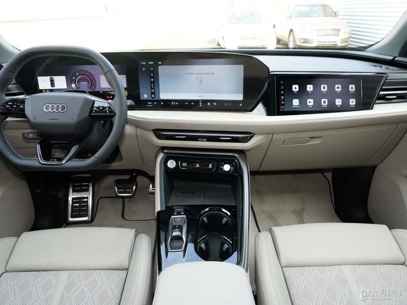 全新奥迪Q5LQ5L车内设计延续着A5L最新的布局,环抱式座舱布局搭配液晶仪表与中控车机所组成的双联屏;方向盘换装全新样式,双平底式设计很有运动感,两侧按钮为半触摸式设计。其次副仪表区域电子挡把也更换全新的滑块设计,更加时尚、精致。