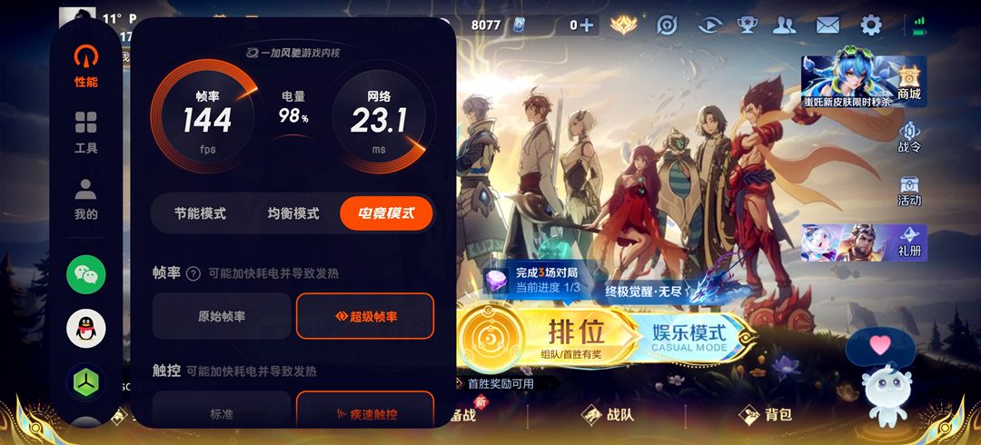 除了性能和散热,一加Ace 6T还通过“电竞三芯”概念,优化了游戏体验的另外两大核心:网络和触控,搭载电竞网络芯G2和灵犀触控芯。在地铁、地下车库等弱信号环境,游戏的网络稳定性和延迟确实表现优于多数同档机型。在实际射击和MOBA游戏中,指哪打哪的跟手感极其明显,技能释放精准,响应迅速。再加上与主机手柄同款的200Hz高采样率陀螺仪,在《和平精英》等游戏中,陀螺仪辅助瞄准的跟手性和稳定性大幅提升,堪称“物理外挂”。