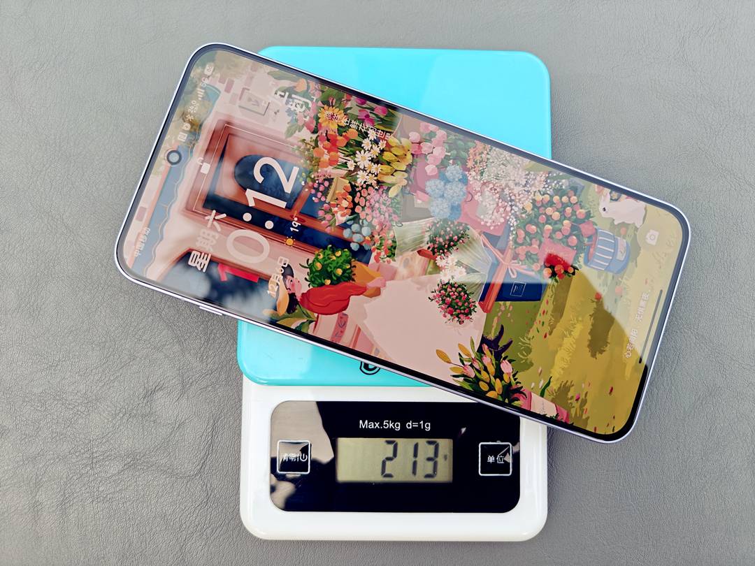 尽管体内蕴藏着一块8300mAh的巨量电池,但一加Ace 6T对手感的追求并未妥协。其机身中框采用了高强度铝合金材质,通过精密加工,在保证结构坚固性的同时,有效控制了整体重量。我们实测的这台电光紫版本,重量约213g克左右(含出厂贴膜),在搭载同级最大电池的机型中,这个重量控制堪称优秀。便捷交互功能同样亮眼:超声波屏下指纹识别速度快、准确率高,且支持湿手解锁,体验远超传统光学指纹。
