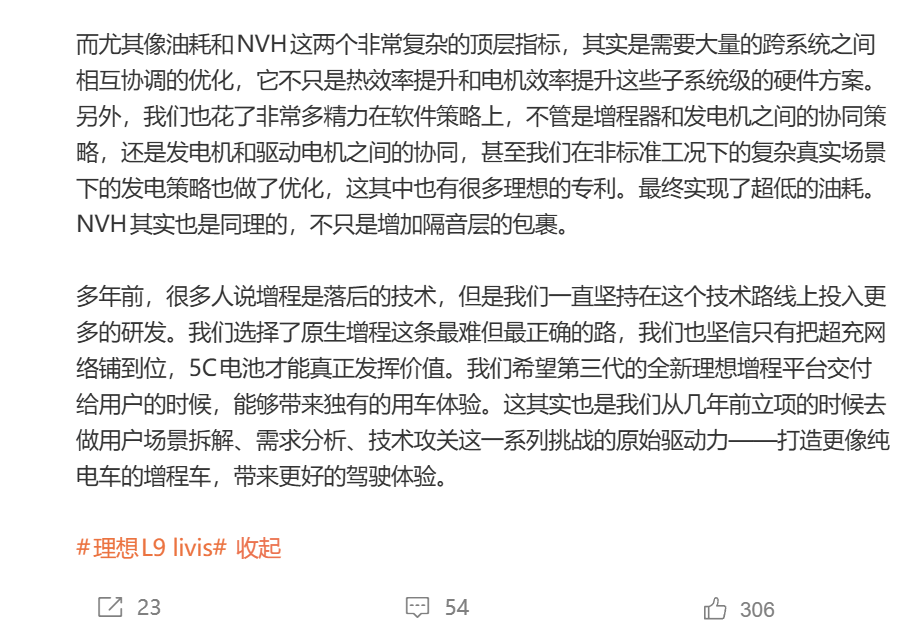 据介绍,早期推出的、L9等车型均采用“油改增”方案,核心是在传统燃油发动机基础上改造适配为增程器。该技术路径曾推动增程式电动车在国内市场的普及,也被行业内广泛借鉴。随着品牌累计交付量突破百万辆,理想汽车通过用户使用数据与需求调研发现,“油改增”方案已无法匹配用户对车辆静谧性、使用经济性等方面的更高需求,由此启动了技术路线的迭代升级。