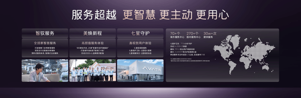 更重要的是,它给用户的豪华体验,从来不止于车本身,目前阿维塔已在全国布局270家服务中心,未来还将持续完善智美七星服务体系,从救援、保养到应急响应的全周期保障,让每一次出行都能多一份从容与安心。