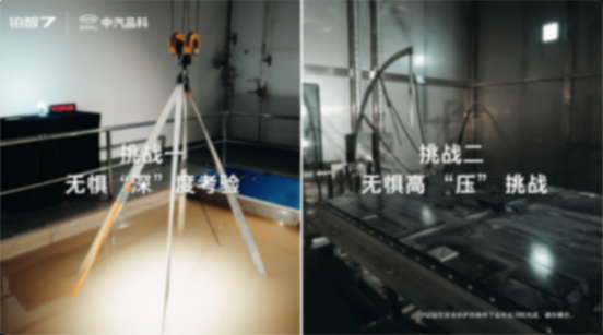 “电池包48小时带载腐蚀浸水”测试,在日常场景基础上直接加码,模拟高腐蚀性海水倒灌导致的铂智7整车泡水场景,在1.2米深的3.5%氯化钠泥水溶液中,实施96倍国标测试时长的浸泡,检测电池包密封性。测试后,电池包均无泄漏、外壳无破损、未发生起火或爆炸,绝缘电阻检测正常。即使铂智7整车长时间泡水甚至意外落入海中,也不会因导致漏电和热失控事故的发生,打捞和清理过程完全安全。长时间泡水都没问题的铂智7,日常涉水自然可以放心通行。