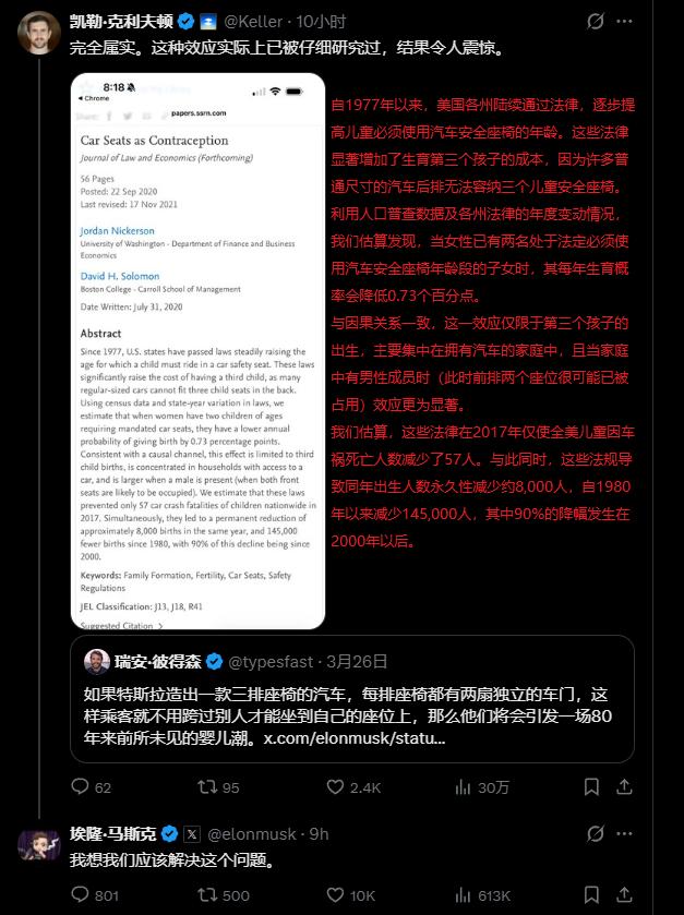 另一位博主也是贴图转评大概阐述了一下家庭用车方面对配备儿童安全座椅和 3 排座车辆的重要性。