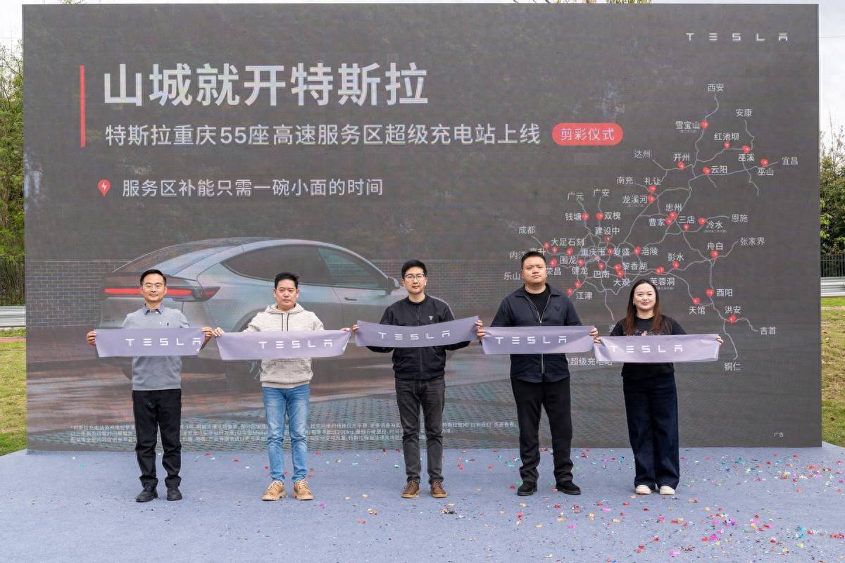 3月28日,特斯拉在重庆大足石刻服务区宣布正式启用一批高速服务区超级充电站。