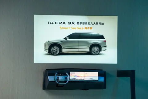 座舱的智能配置也不是为了堆料,而是用起来顺手。九屏联动的设计,包括前排15.6英寸中控双联屏、后排21.4英寸吸顶屏,还有3块藏在木纹内饰里的SmartSurface魔术屏,不用的时候隐形,用的时候再唤醒。后排门板的魔术屏能显示侧后方路况,避免开门时的安全隐患,吸顶屏还能跟着二排座椅角度调节,不管是坐着还是躺着,看东西都舒服。智能WHUD会自动追踪驾驶者的眼球调整投影,高矮个子都适配,语音和手势交互的“大众精灵”,开车时不用低头操作,也更安全。