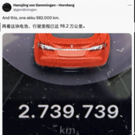 日前德国车主Hansjrg Gemmingen在社交平台上发文表示,他驾驶的特斯拉Model S累计行驶里程已突破了270万公里,再度刷新全球特斯拉汽车行驶里程最长纪录。这位仁兄在2014年从别人手里买来了这辆Model S P85+,当时这辆车已经跑了3万多公里,然后到了2019年,也就是5年之后,这辆车就跑到了100万公里,5年跑了96万多公里,这位兄台真是没闲着,一直开着这辆二手车进行长途自驾旅行……