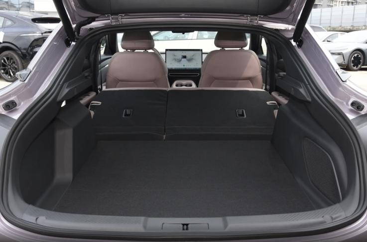 小鹏MONA M03尺寸为4780x1896x1445mm,轴距2815mm,腿部空间在三车中最是宽裕,但溜背造型让后排头部略显局促,掀背式后备箱常规容积600L,开口大还支持后排座椅比例放倒,拓展后容积可达1600L,装载大件物品很方便,适合年轻家庭,日常储物灵活性较好。