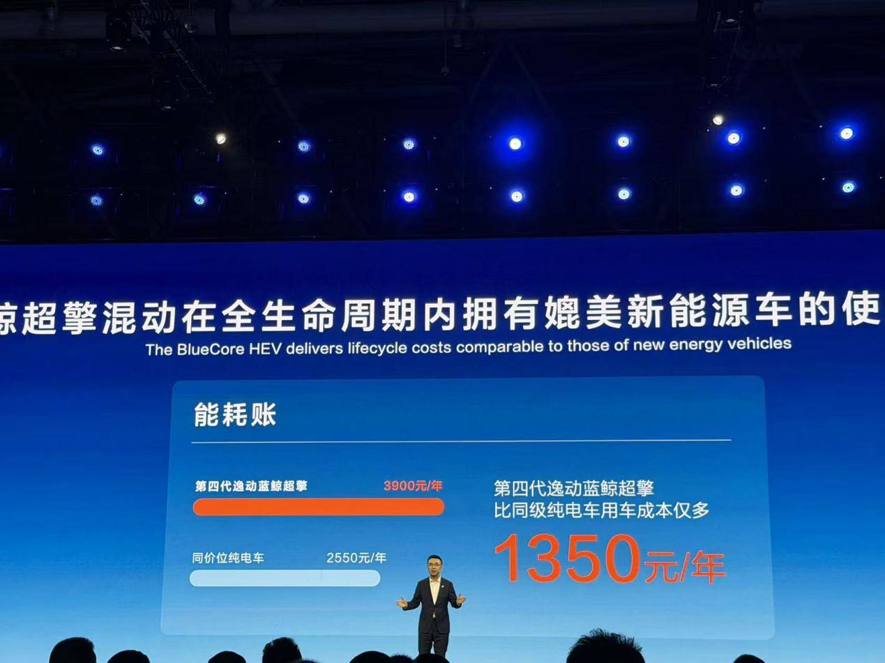 在发布会现场,长安汽车执行副总裁杨大勇为消费者算了一笔账:以第四代逸动蓝鲸超擎为例,城区实测百公里综合油耗约2.98升,对比同级传统燃油车6升油耗估算,每百公里能省下3.02升油。按一年跑1.5万公里,一年省油453升,结合92号汽油当前8.57元/升计算,一年就省下3882元。按6年换车周期,光油费就能省下2.33万元。