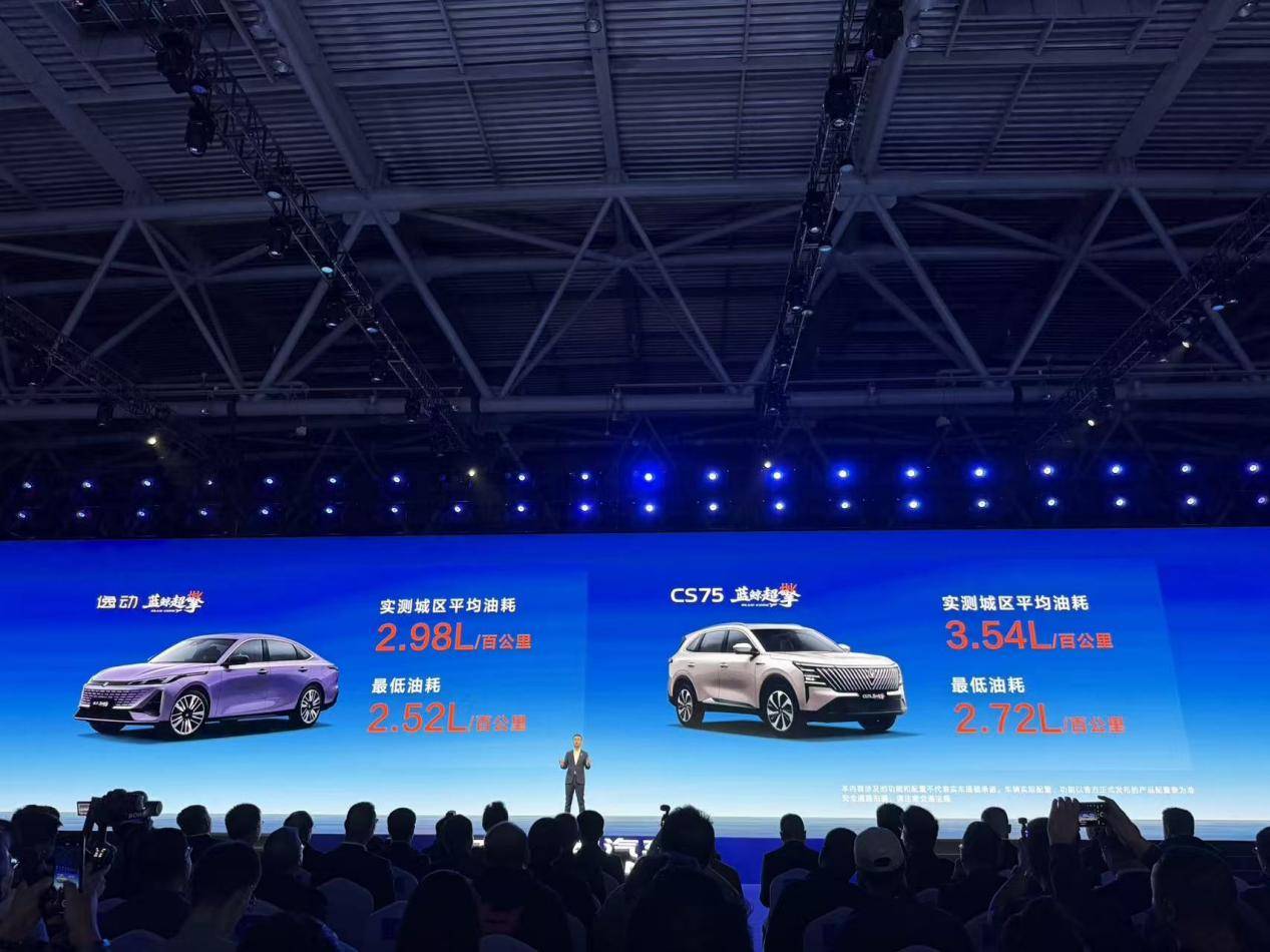 发布会上,长安汽车公布一组实测数据,搭载蓝鲸超擎混动的第四代逸动城区油耗仅2.98L/100km,CS75 PLUS城区油耗仅3.98L/100km。长安汽车也喊出了一个响亮的口号: