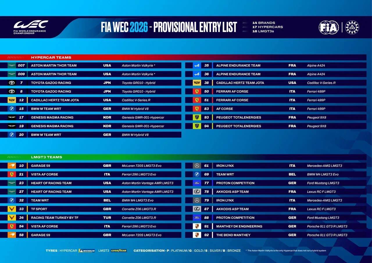 GMR-001 Hypercar 从 2025 年下半年开始投入实战测试,团队在此过程中积累了赛事运营经验,并完成了系统稳定性验证。今年 WEC Hypercar 组别将有上届冠军法拉利,以及丰田、宝马、阿斯顿・马丁、阿尔派、凯迪拉克、标致等共计 14 个品牌参赛,竞争一触即发。