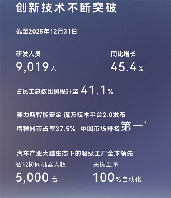技术投入方面,公司全年研发投入125.1亿元,同比大幅增长77.4%,高强度研发支撑问界系列高端车型迭代。