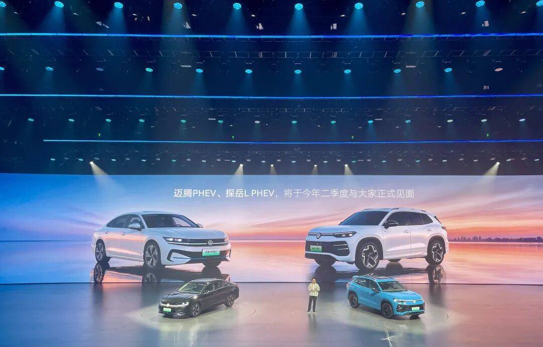 除了前述两位“主角”外,还有3款重量级车型也在当天亮相。其中,迈腾PHEV将于今年第二季度正式发布。看外观,格栅处新增的蓝色饰条足以表明“身份”;论动力,该车的插混系统由1.5T发动机+电机组成,最大功率分别为95kW和145kW,纯电续航里程超100km。