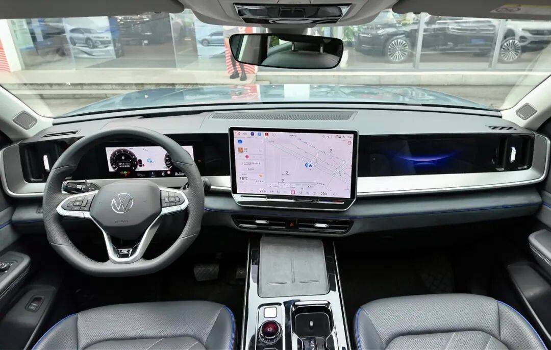 进入车内,座舱整体设计已看齐大众品牌新一代内饰风格,15英寸悬浮中控屏与11.6英寸副驾屏,兼具科技感与豪华度。在皮质、木纹和金属饰条烘托出的质感下,5007/2015/1767mm车身长宽高+2980mm轴距带来了宽适大五座空间,驾驶辅助系统同样好用。