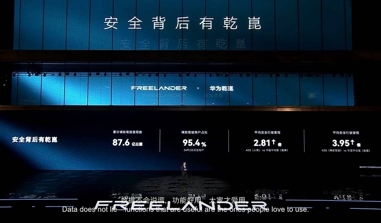 截至2026年2月底,华为乾崑累计辅助驾驶里程达87.6亿公里,月活用户占比95.4%,单月主动避免可能碰撞32.7万次,以可靠实力守护每一次出行安全。