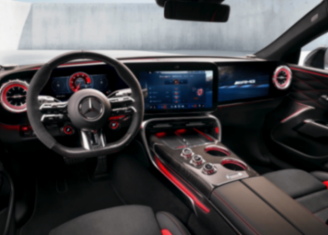 全新AMG GT四门跑车的高性能DNA则体现在以驾驶者为中心的驾驶舱内。仪表盘由一块宽大的显示屏主导,屏幕被划分为偏向驾驶员的区域和略微偏向副驾的区域。