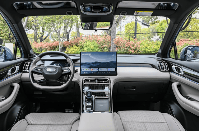 内饰方面,吉利博越L小蓝灯版依旧采用极简风格座舱设计,中央配备15.4英寸2.5K中控屏,搭配液晶仪表盘和25.6英寸AR-HUD抬头显示。车机配备Flyme Auto智能座舱系统,并搭载的车规级7nm龍鹰一号芯片,拥有16G+128G超大存储空间,以及8155芯片2倍的AI算力。