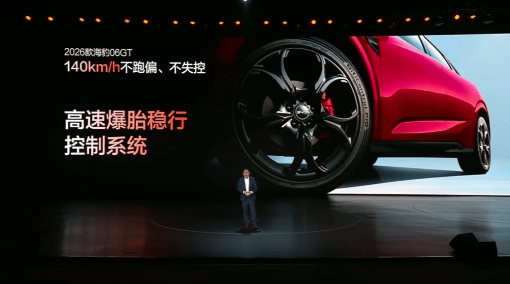 2026款海豹06GT还新增了高速爆胎稳行控制系统,即便在最高140km/h时速下发生爆胎依然能稳住车身。