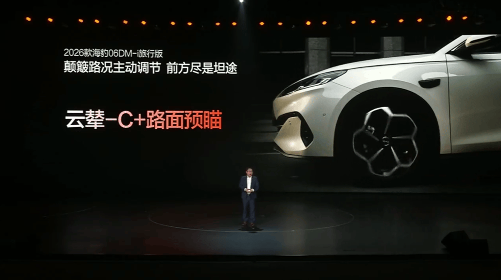 驾控方面,2026款海豹06DM-i旅行版拥有云辇-C智能阻尼车身控制系统,并新增路面预瞄功能。
