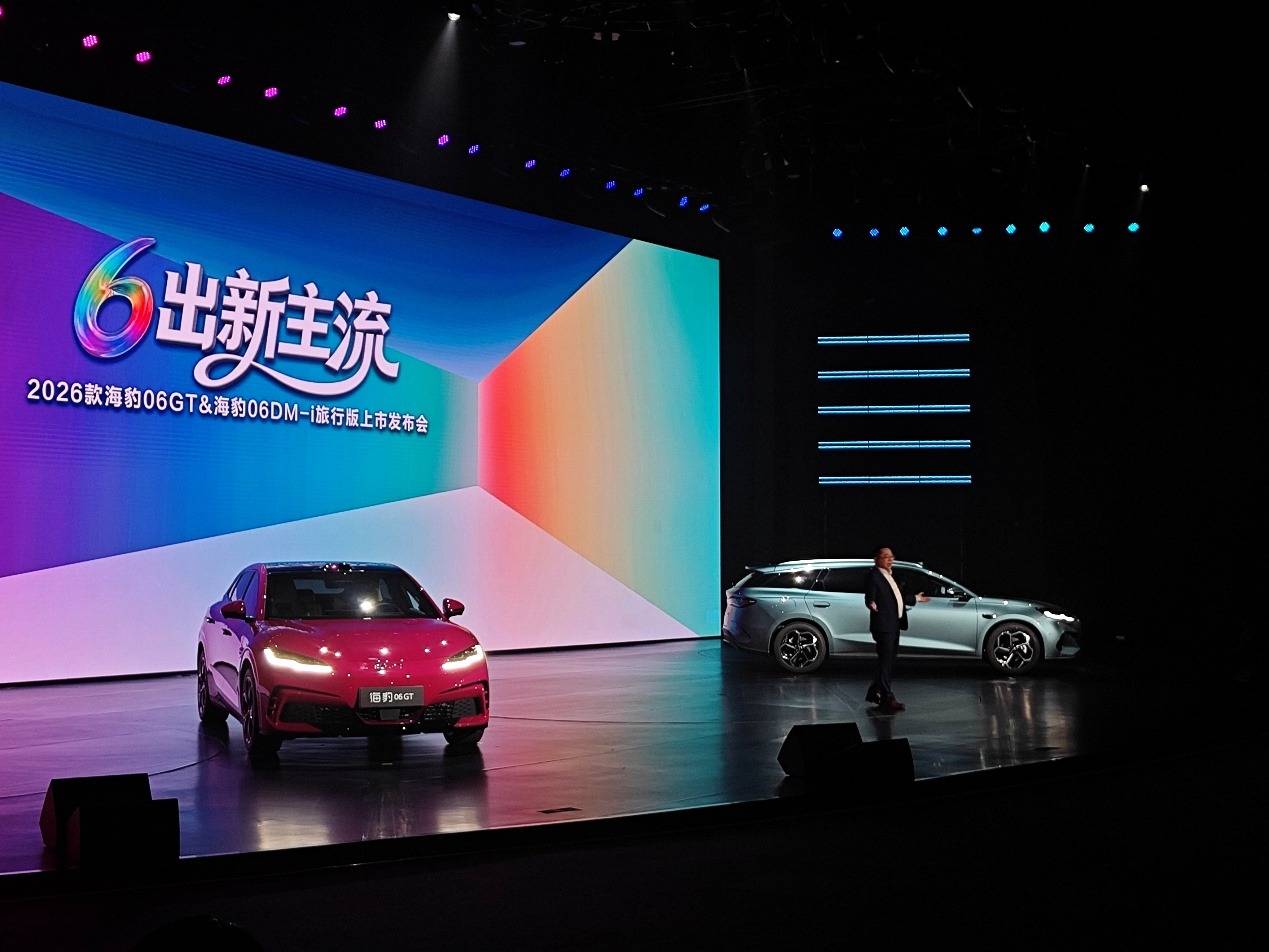 日前,比亚迪海洋网举行发布会,同时推出2026款海豹06GT与2026款海豹06DM-i旅行版两款新车。前者售价12.89万-16.99万元,后者售价11.19万-13.99万元。两款新车分别切入高性能纯电两厢轿跑与超混旅行车两大细分赛道,构成了一组精准的战略组合拳。