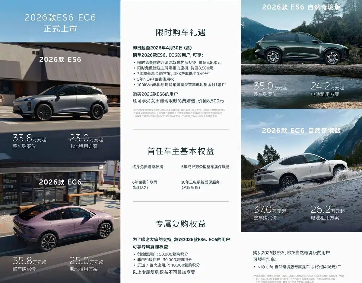 4月2日,蔚来推出了年度改款(2026款)的ES6与EC6。在竞争早已刺刀见红的30万级豪华纯电SUV市场,仅仅靠一次“常规升级”已经很难掀起波澜。那么,这一次的2026款蔚来ES6,到底适不适合咱们普通人去入手呢?它真正值得买的理由又是什么?下面我们一起来分析分析。