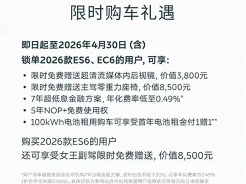 综合来看,对于部分追求豪华纯电体验、且居住地换电网络较为完善的用户,2026款ES6会是一个成熟且稳妥的选择。若所在城市换电站覆盖不足,且对智能驾驶非刚需,那我认为同价位的增程或纯电车型可能会更适合日常使用。总之,没有十全十美的车,有的只是适合你的车型,也希望今天的这番分析能对你的购车有所帮助。