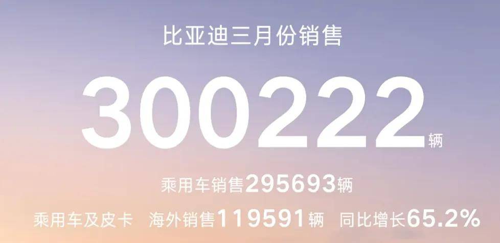 比亚迪3月销量继续领跑自主车企,总销量达到300222辆。其中王朝、海洋系列作为品牌销量主力,单月销量超过26万辆。方程豹3月销量为2.5万辆,腾势汽车7133辆,仰望品牌307辆。