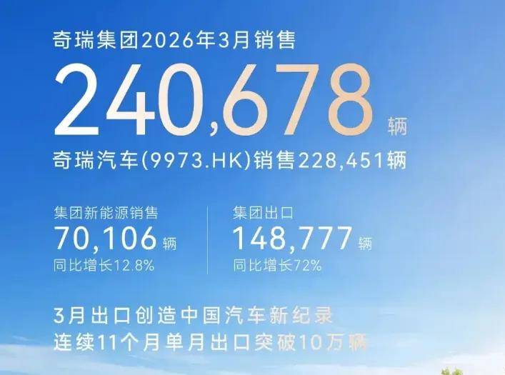 作为自主车企的“老大哥”,奇瑞集团乘着新能源汽车的东风,近两年重新回归自主第一梯队。最新消息,奇瑞集团3月销量24万辆,同比大涨12.1%。其中奇瑞汽车销量达到22.8万辆。今年一季度,奇瑞集团累计销量为60万辆。