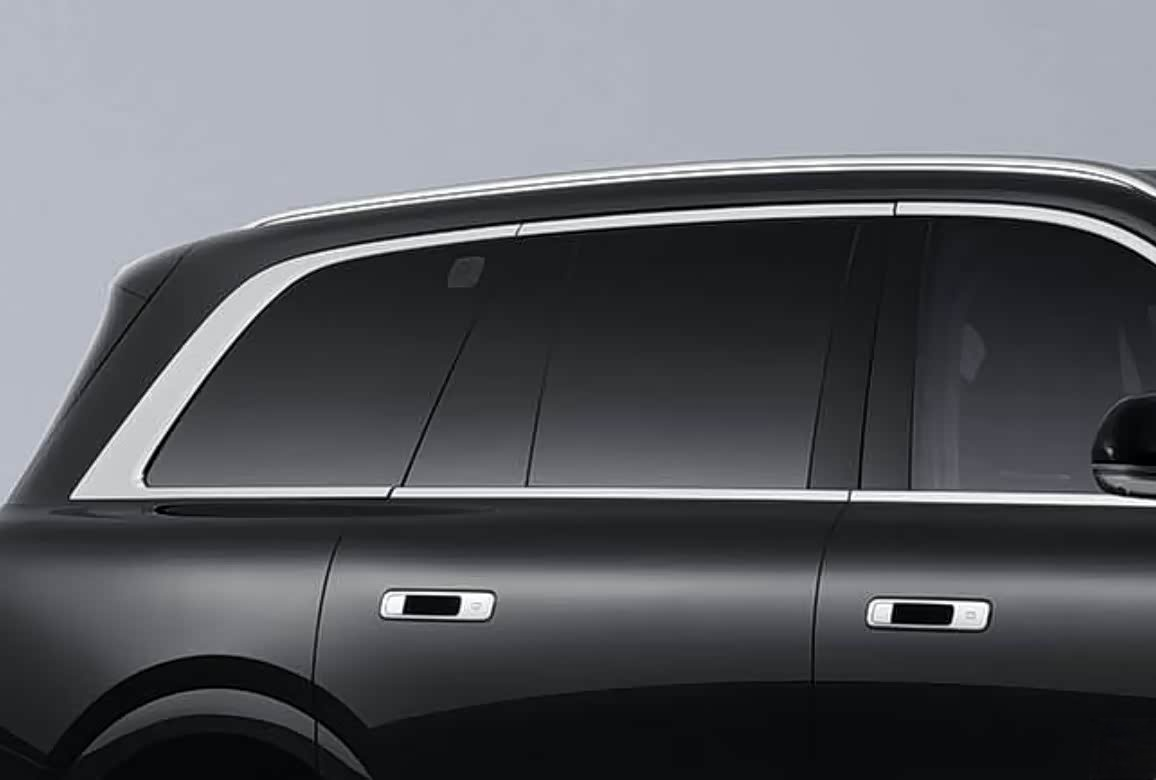 侧面和此前申报图基本一致,最大的看点莫过于尊界S800同款的星光门把手了。另外,新车的第三排车窗增加了一处摄像头,以及配备了悬浮式轮圈中心盖,不过车标并未回正。尺寸方面,新车的长宽高分别为5285/2026/1845mm,轴距为3125mm。和现款车型相比,其车长增加了55mm、车宽增加了27mm、高度增加45mm,轴距则增加了15mm。