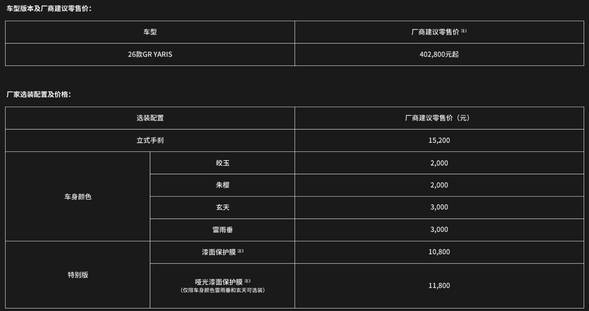 最后,26款GR YARIS原厂还提供了额外一层的车漆防护,消费者可选择为车辆增加一层原厂的隐形车衣或是磨砂车衣,以应对恶劣赛道环境对车漆的侵害,更好的保护爱车。