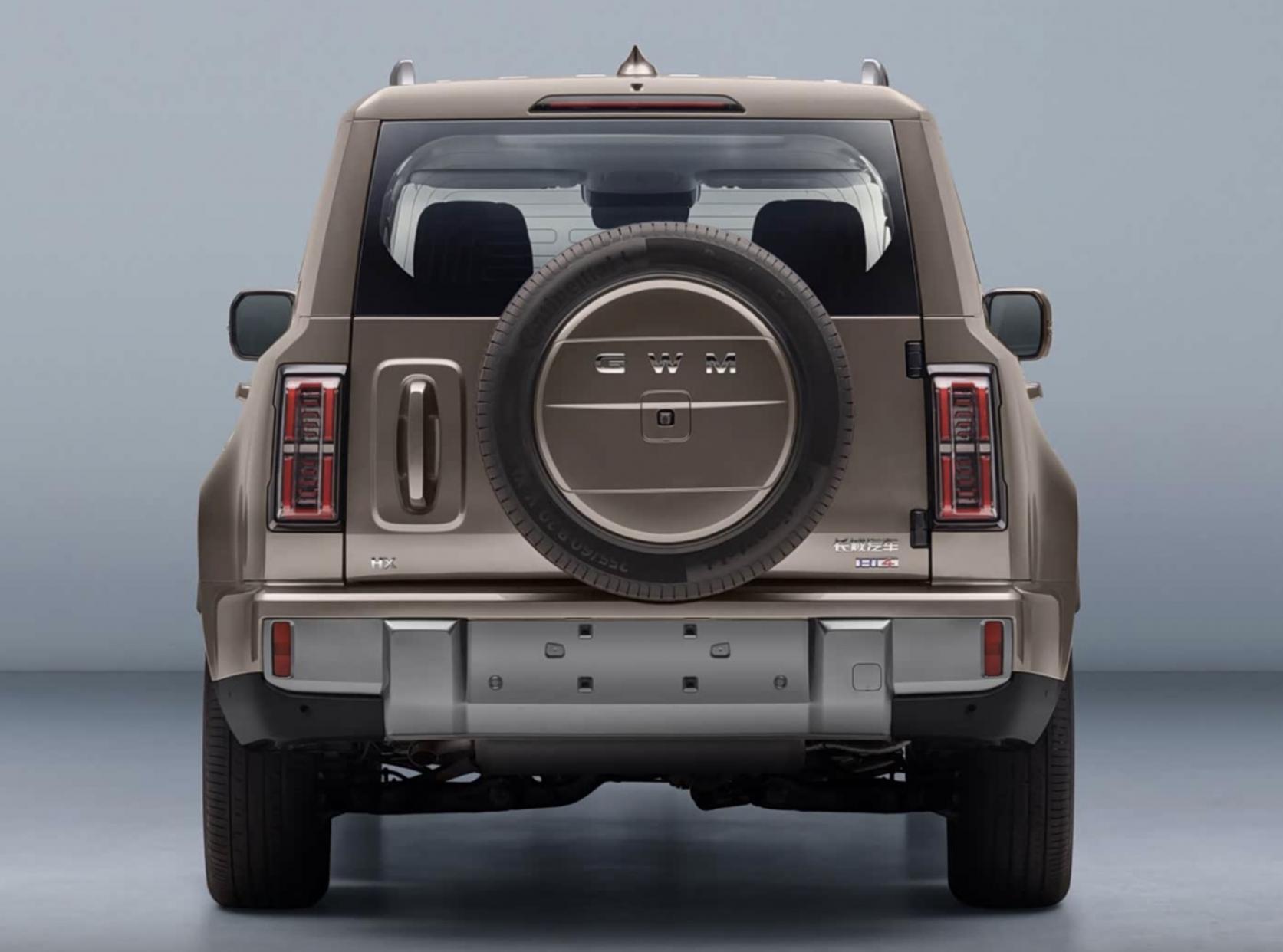 车身侧面线条规整挺拔,平直的车顶搭配银色行李架,既保障车内头部空间,又提升户外装载灵活性,宽体轮眉搭配大尺寸越野轮毂,进一步凸显硬派气场,传统外露式车门把手延续硬派SUV经典设计,深受越野爱好者青睐。车身提供两种长度版本,长宽高分别为5138(5299)/2050/1970mm,轴距达3000mm,超长轴距为车内空间布局提供充足基础,同时可选装双色车身、电动侧踏、不同样式轮圈等,满足用户个性化需求。车尾采用侧向开启尾门,搭配外挂式全尺寸备胎,既彰显越野属性,又能拓展后备厢储物空间,竖向布局的LED尾灯与前脸灯组形成呼应,视觉效果出众。