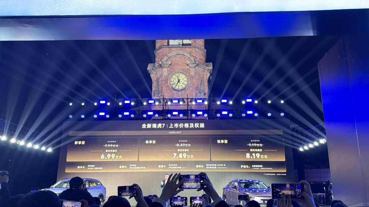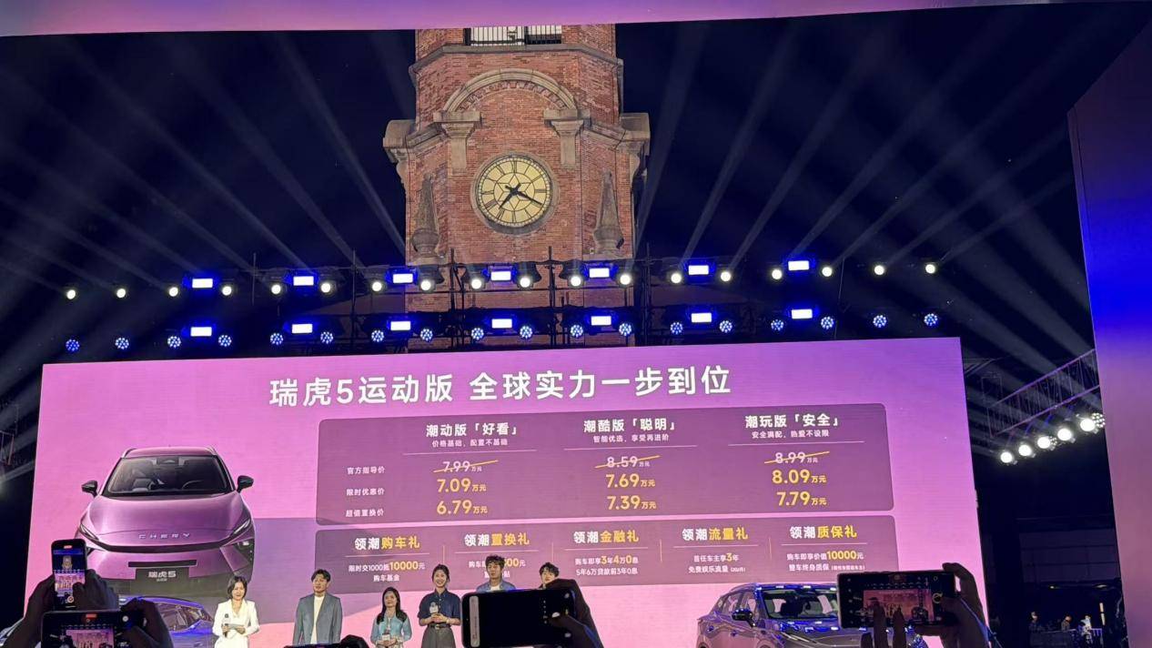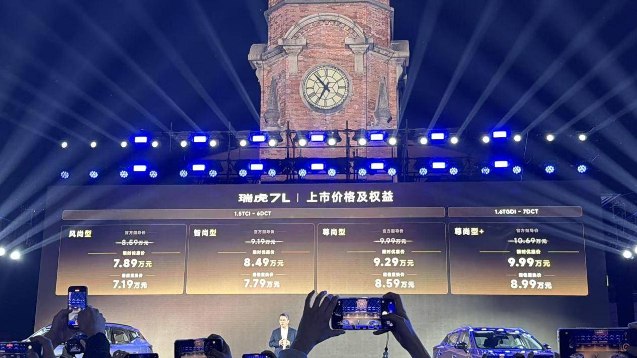 其中,全新瑞虎7指导价7.99万元-9.19万元,限时优惠价6.99万元-8.19万元;瑞虎7L指导价8.59万元-10.69万元,超级置换价7.19万元-8.99万元;瑞虎5运动版指导价7.99万元-8.99万元,超级置换价6.79万元-7.79万元。