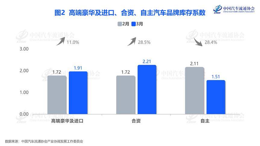 二、高端豪华及进口、合资品牌库存系数环比上升、自主品牌下降