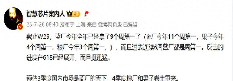 等着看吧,九月份开学季销量榜还得洗牌,蓝厂要是能扛住苹果新机攻势,今年年度冠军真有戏。