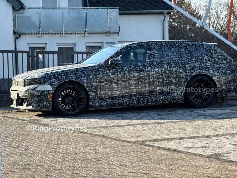 最新谍照还展现了M5原型车的更多细节。其中一辆旅行版的双肾格栅看起来有所缩小——当然,也可能是伪装贴纸造成的错觉。不过近期其他测试车也显示出格栅缩小的趋势。
