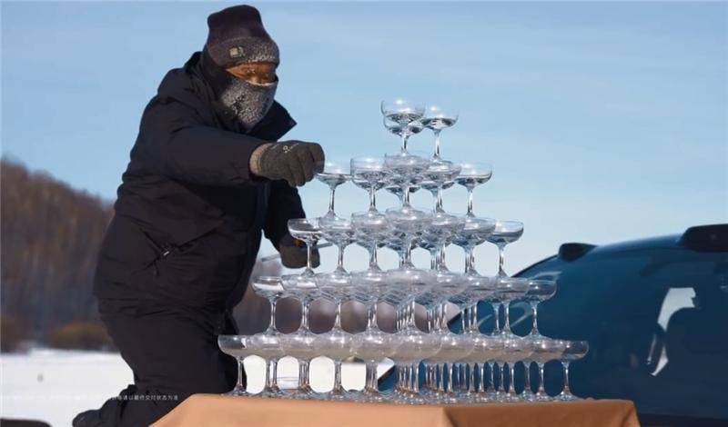 消除恐惧最好的办法就是直面恐惧,面对质疑最好的办法就是用实际行动和成果来打破质疑。此前蔚来旗舰轿车ET9上市的时候,官方在车头叠上5层香槟塔,过减速带时香槟塔稳稳不倒,以此证明其优异的底盘素质。但当时有人质疑,是不是量身定制了减速带的间距?是不是用胶水把杯子粘住了?
