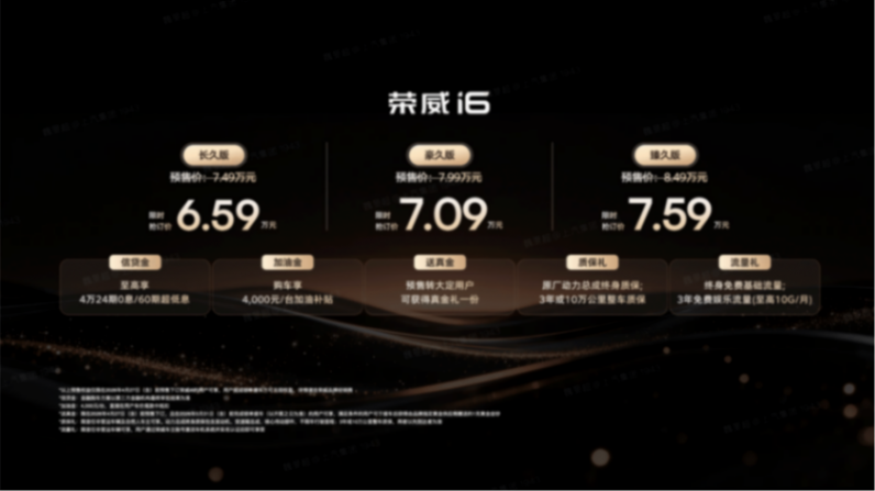 4月13日,上汽荣威全新i6正式开启预售,三款车型覆盖长久版、豪久版、臻久版,限时抢订价锁定6.59万-7.59万元区间,同时配套推出至高4万24期0息、60期超低息金融政策,4000元加油补贴、动力总成终身质保,以及预售转大定5月底前锁单提车送足金金钞的多重福利。在新能源席卷车市、燃油家轿市场不断被挤压的当下,荣威i6以“省油、耐久、高智、大空间”的核心实力入场,不仅打出了极具诚意的价格,更用越级产品力,重新定义了国民级燃油家轿的价值标准,也让我们看到自主车企在燃油赛道的深耕与担当。